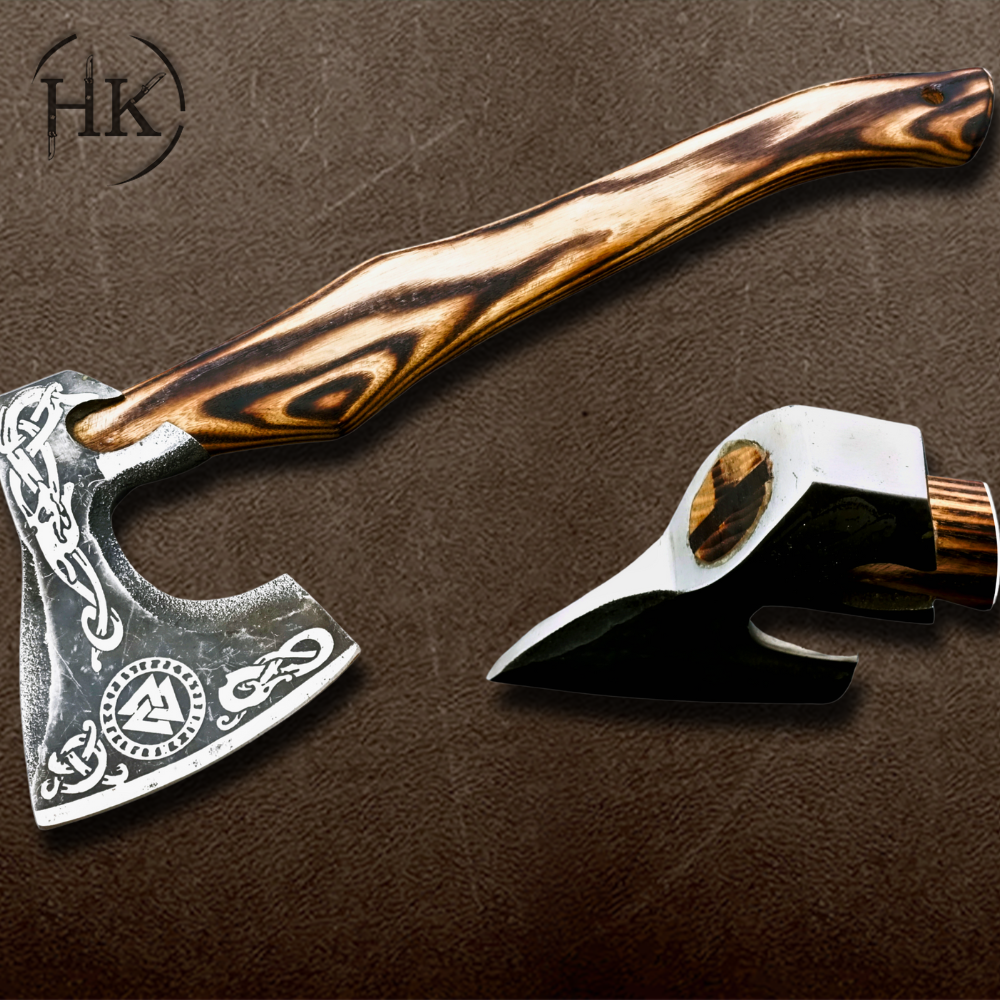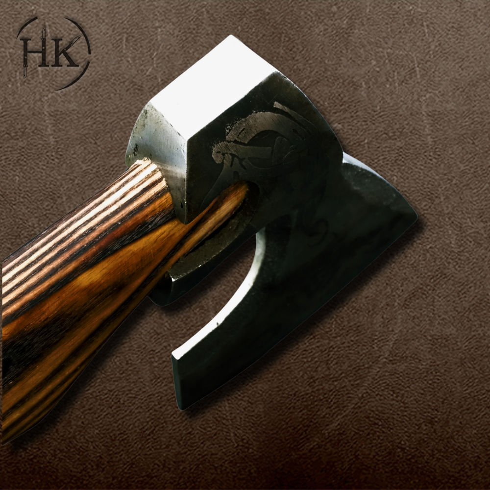 The custom engraving on the blade makes each axe unique, showcasing the level of artistry and attention to detail that goes into its creation. These engravings reflect traditional Viking designs, symbolizing strength, courage, and the warrior spirit. Each engraving is carefully hand-done, ensuring that no two axes are alike. The intricate designs add an artistic dimension to the axe, making it not only a functional tool but also a stunning collectible.