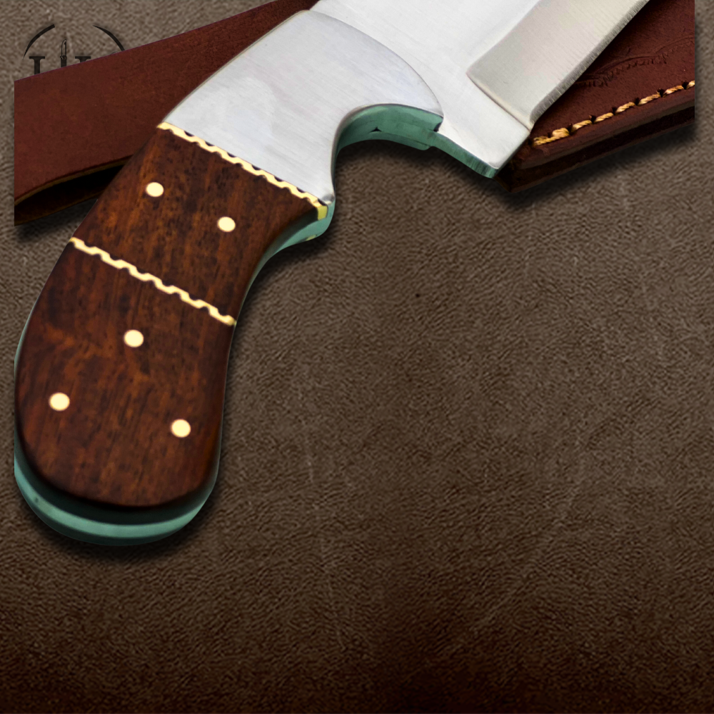 Premium Steel Knife with Rustic Wooden Handle and Leather Sheath