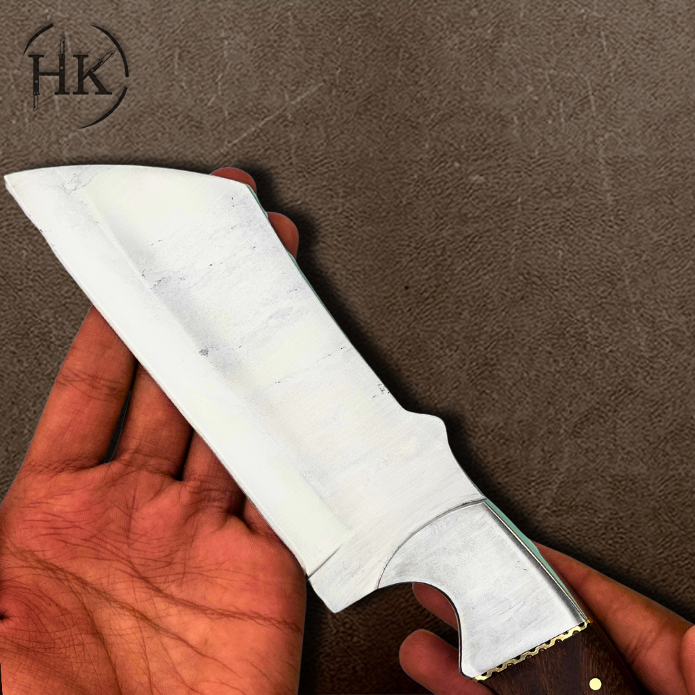 The handle of this knife is a true work of art. Made from robust natural wood, it features a rustic design that offers both beauty and function. The ergonomic design ensures a comfortable and secure grip