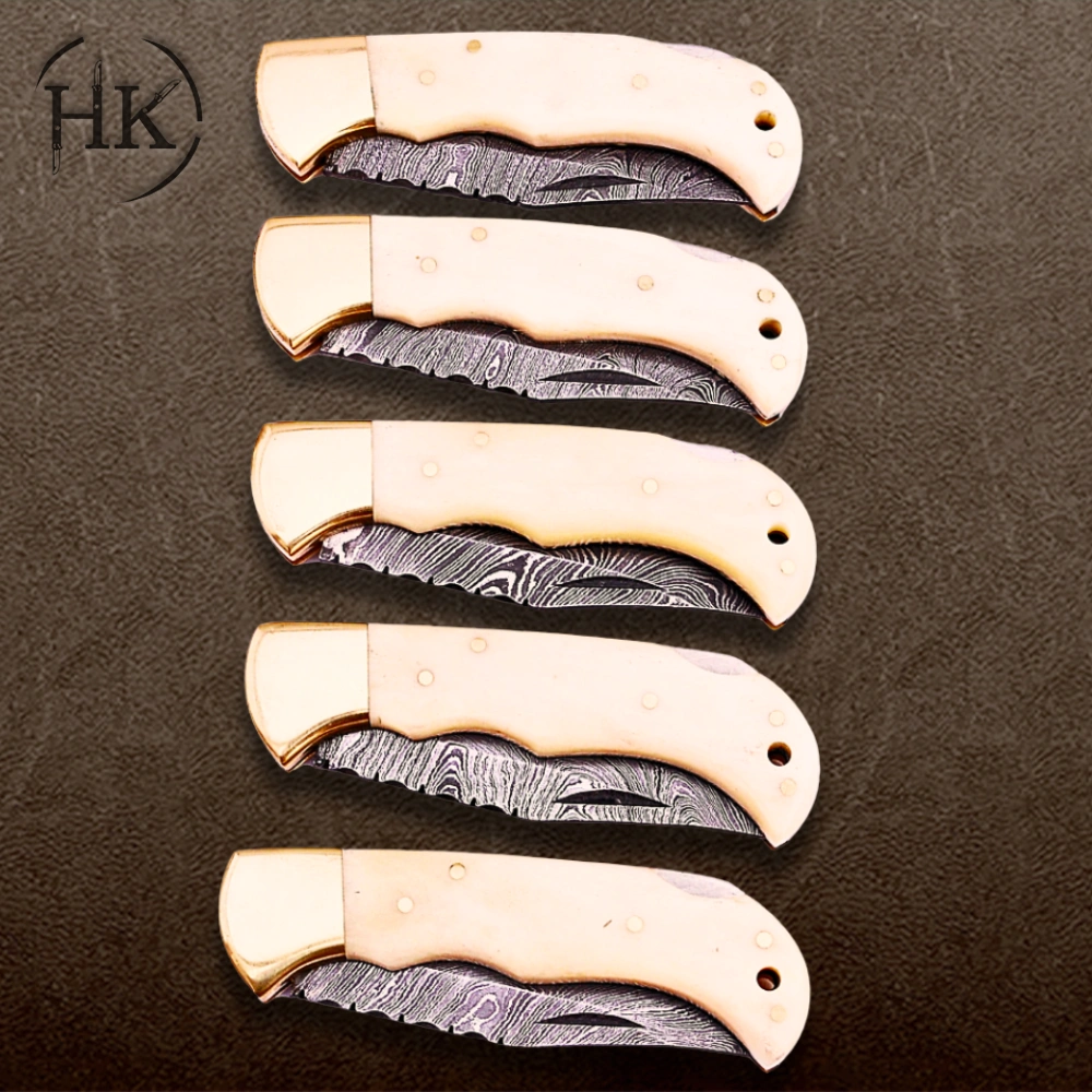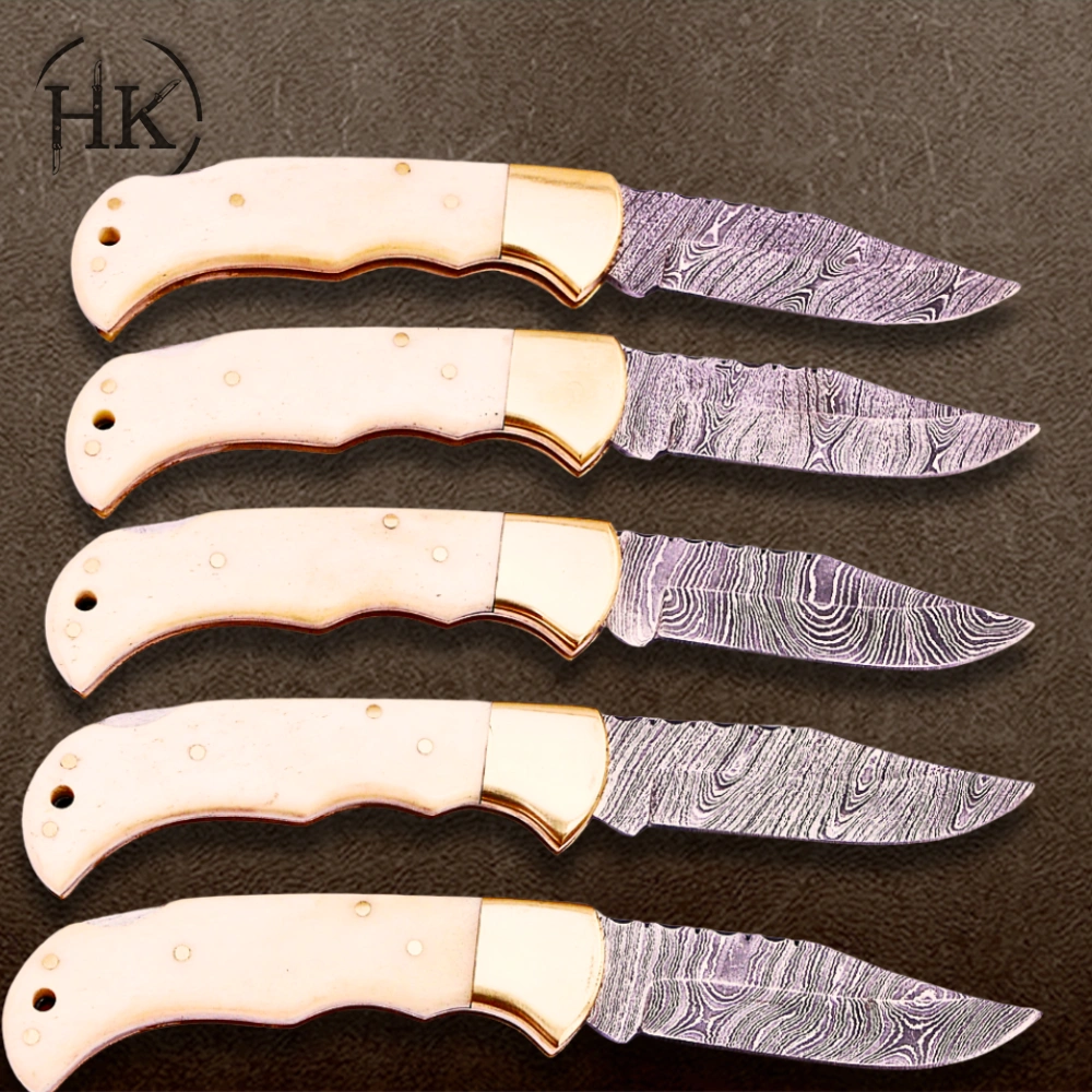 The handles of these hunting folding knives are crafted from high-quality materials like polished wood, bone, or resin composites. Designed for both style and ergonomics, they provide a secure, comfortable grip that ensures precise handling during extended use. Each handle is a work of art, complementing the blade’s intricate design.