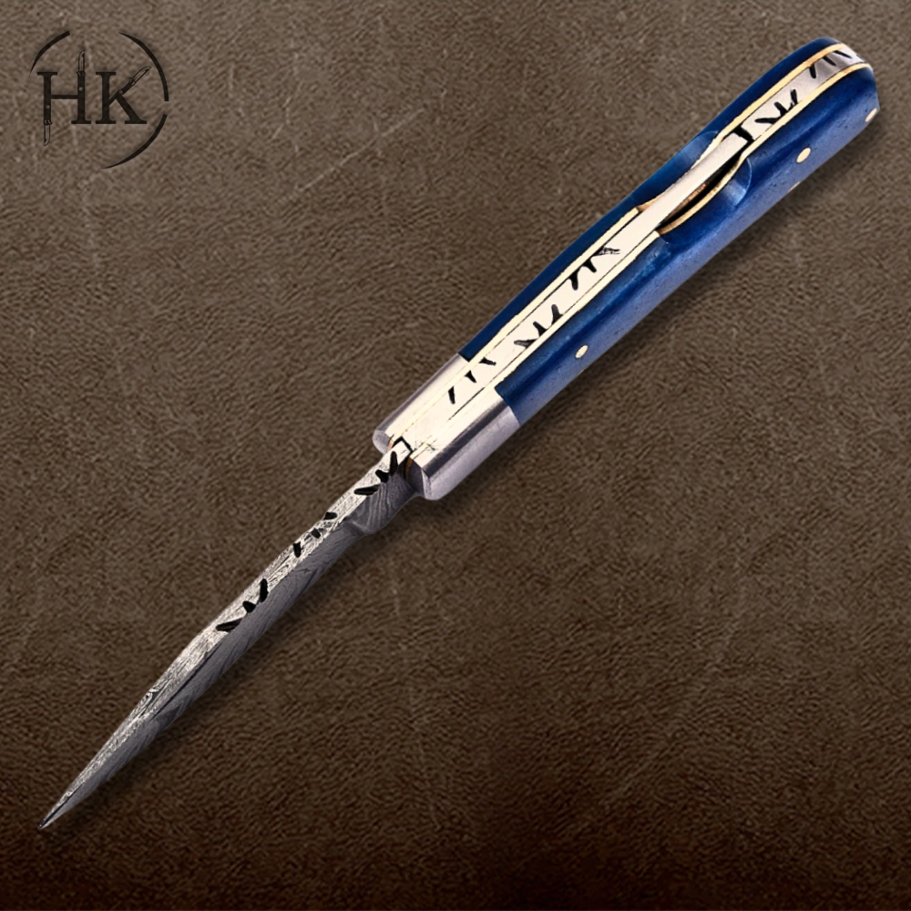 Discover the perfect balance of strength and elegance with this Handcrafted Damascus Steel Folding Knife. Featuring a striking blue titanium handle, this knife offers durability, precision, and style. Ideal for collectors, outdoor enthusiasts, and everyday carry. Elevate your gear with this premium-quality masterpiece. Order now and experience true craftsmanship!