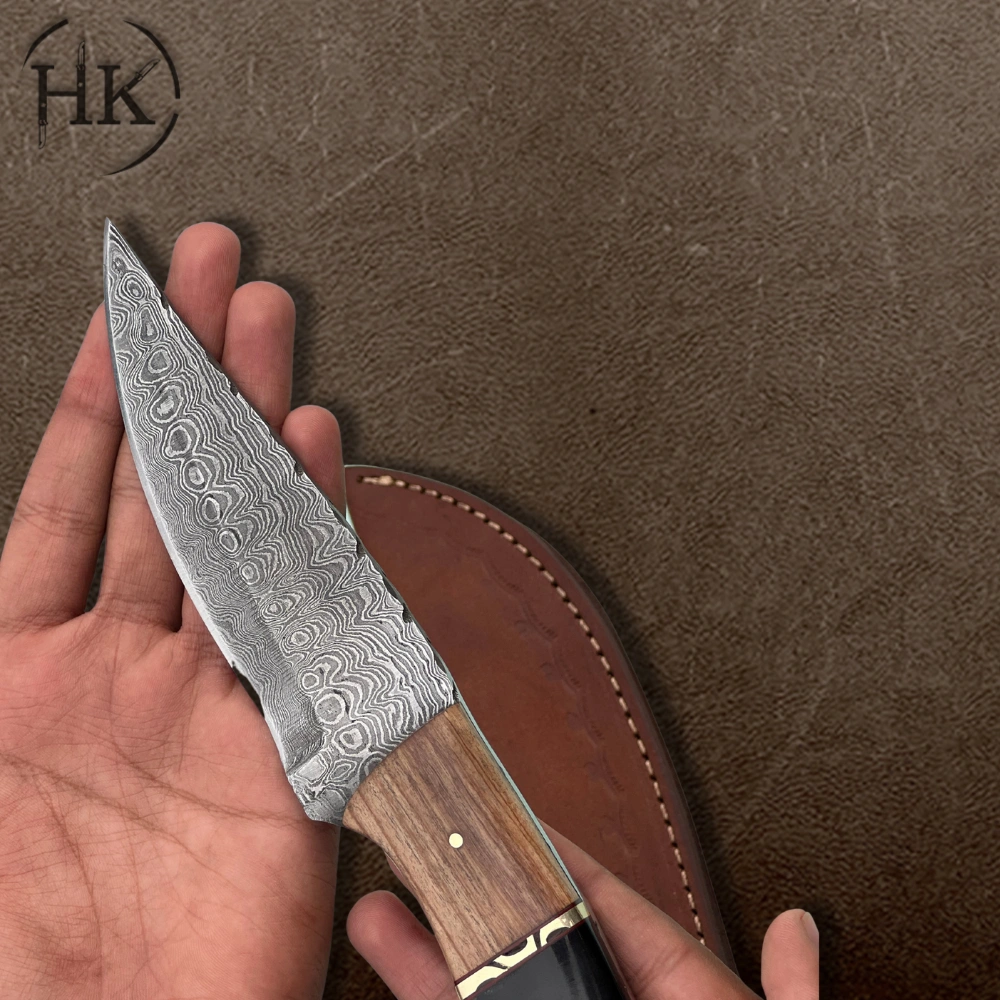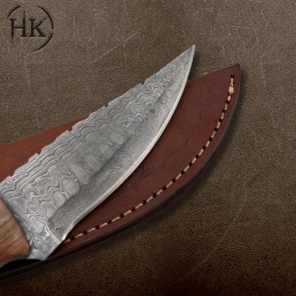 The exotic hardwood handle not only adds a touch of natural beauty but also ensures a comfortable and secure grip, making it easy to handle during extended use. Featuring a full tang design, this hunting skinner knife guarantees unmatched balance and durability. The included handcrafted leather sheath provides safe storage and convenient carry for any outdoor adventure.