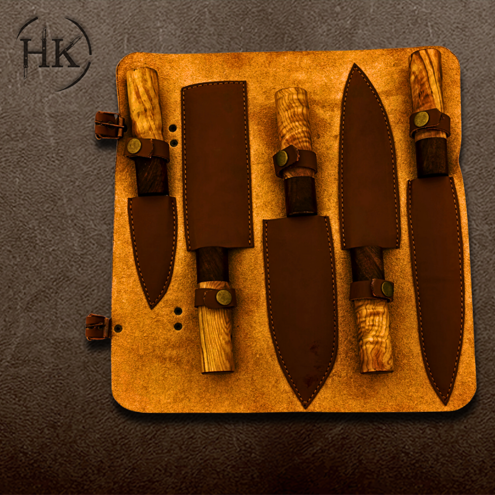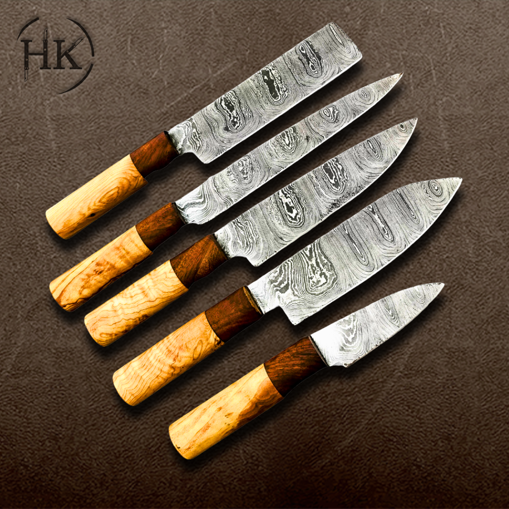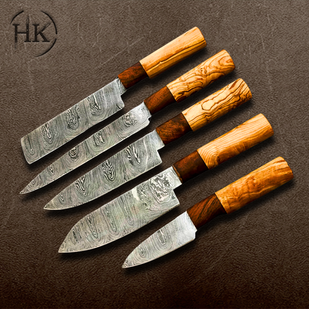 SENKEN 5-Piece Damascus Kitchen Knife Set – Dynasty Collection | 67-Layer Japanese VG10 Steel with Sycamore Wood Handles